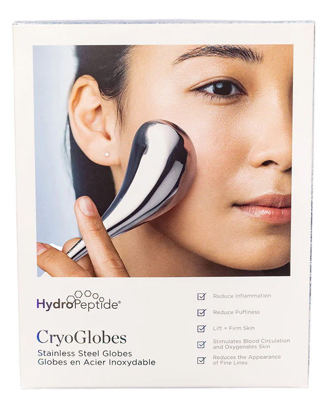 Schłódź kule w zamrażalce przez co najmniej godzinę przed użyciem. Nałóż wybraną maskę, olejek lub serum. Wmasuj kule w skórę ruchami ku górze, podążając za naturalnym konturem twarzy. Delikatnie roluj wokół delikatnych okolic oczu.